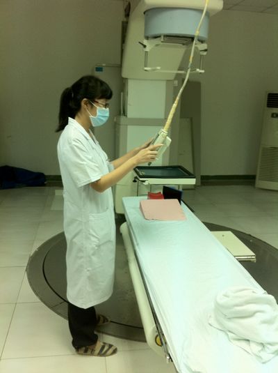 员工在做PET-CT定位(广州医公司附属武警医院) |