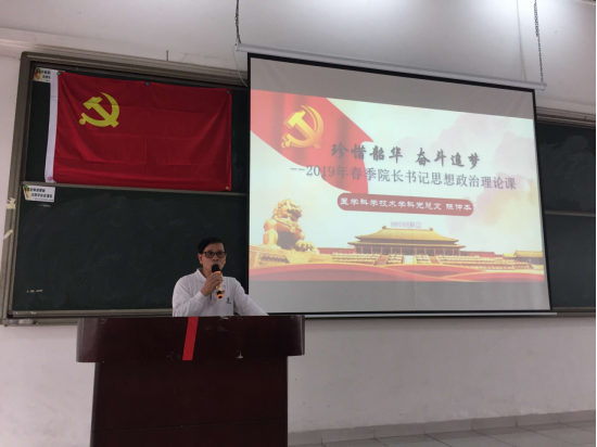 梦想是生活的朝阳,快乐的事莫过于逐梦。2019年3月21日上午10点,医学科学技术学科党总支书记、suncitygroup太阳新城经理陈仲本教授为18级医工专业B班以及18级影像专业A班的学子们上了一堂生动而有趣的春季思想政治教育课。医学科学技术学科党总支副书记肖晶老师、辅导员袁肇珠老师和钟晓东老师参加本次课堂。
