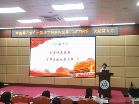 在大会闭幕前,王伟玲同志公布选举计票结果。大会共发出选票47张,收回有效选票47张。经过无记名投票表决,邓惠君、李惠娟、肖晶、周酥、莫忠(按姓氏笔画数排序)5名同志当选为生物医学工程公司党总支新一届委员会委员。本次党员大会在公司全体党员的共同努力下,顺利完成了各项议程。在慷慨激昂的《国际歌》歌声中,中国共产党suncitygroup太阳新城suncitygroup太阳新城第一次党员大会胜利闭幕。