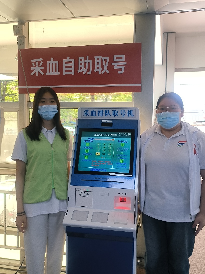 杨嘉谊同学在东莞市人民医院参与导诊服务(左一)