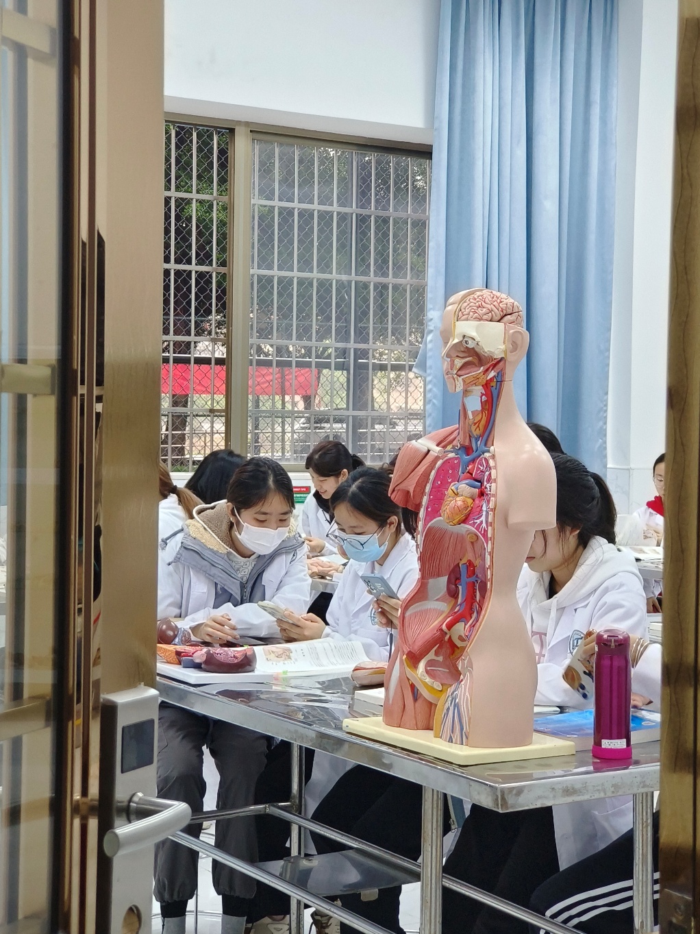 杨嘉谊同学积极钻研人体解剖学课程(左一)