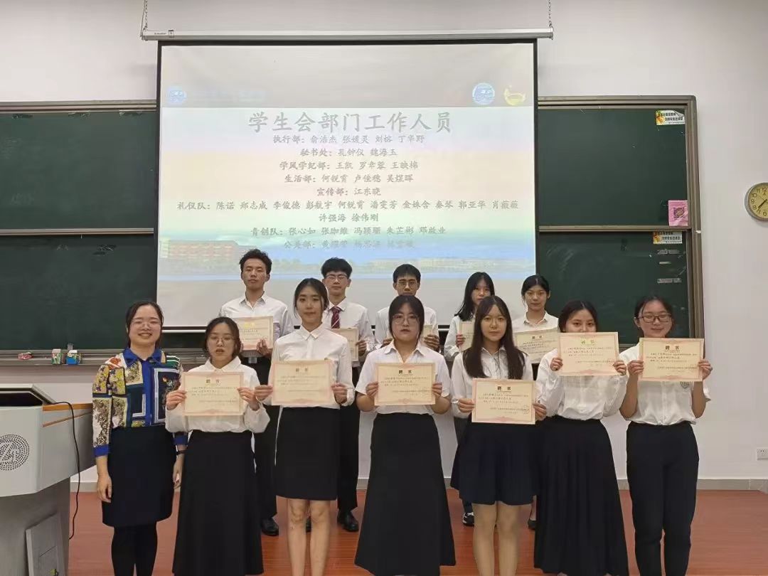 杨嘉谊同学参与2023年suncitygroup太阳新城员工会和团委代表大会(第一排左三)