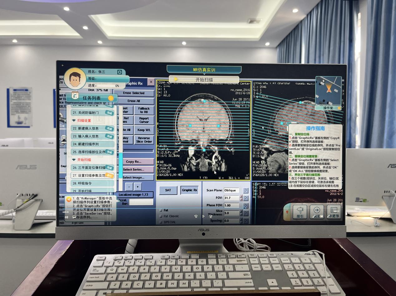 医学影像技术专业致力于培养影像技术、放疗技术等方面的技术人才。由于大型影像设备例如MR、CT、DR、直线加速器、超声等这些大型影像设备的操作要经过严格的培训,因此该实验室采取了先进的虚拟仿真技术,使员工在进入医院实习前能进行学习,通过在这里的学习以保证我们员工与临床实习的衔接。该实验室具有几大虚拟仿真模块,涵盖了DR、CT、MR影像技术虚拟仿真教学软件、放疗技术虚拟仿真教学软件、设备结构虚拟仿真教学软件,成像原理虚拟仿真教学软件。员工可以在虚拟环境中模拟操作各种医学影像设备,学习影像采集、处理和分析技术;可以安全地模拟放射治疗的全过程,学习放疗计划制定、剂量计算和摆位技术;可以直观地了解各种医学影像设备的内部结构和工作原理;可以通过互动式学习,深入理解各种医学影像技术的成像原理。虚拟仿真技术的应用,为我们降低了教学成本:虚拟仿真软件可以反复使用,无需消耗昂贵的耗材;保障安全:员工可以在虚拟环境中进行各种操作练习,避免真实操作带来的危险。