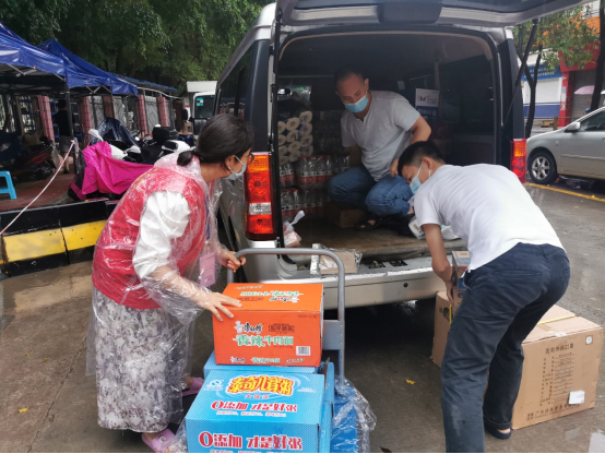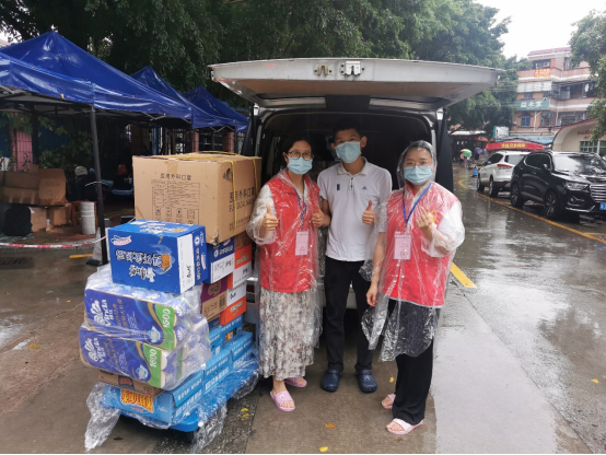 (肖晶老师与邓惠君老师接收员工会捐赠物资)