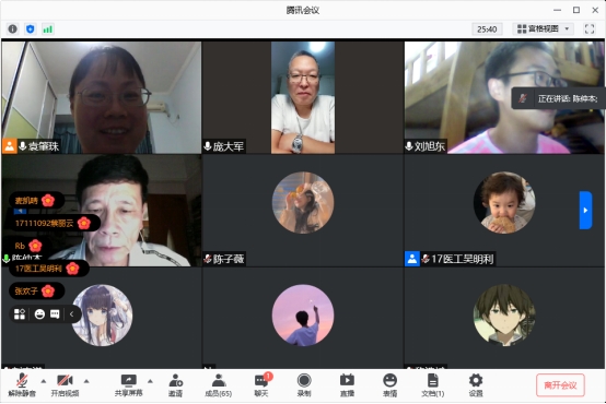 受新冠肺炎疫情的影响,广州校区于6月20日期实施封校管理,全校师生开启隔离模式。为了给2021届生物医学工程专业(以下简称“21届医工”)毕业生在隔离期间排忧解难,21届医工班级于6月23日晚8点,在腾讯会议平台开展以同心战“疫”,同“屏”共振为主题的班会。此次主题班会由辅导员袁肇珠老师主持,出席本次班会的有陈仲本经理、庞大军副主任、、班主任刘旭东老师、涂佩琪老师、刘志洋师兄、韩丰泽师兄。