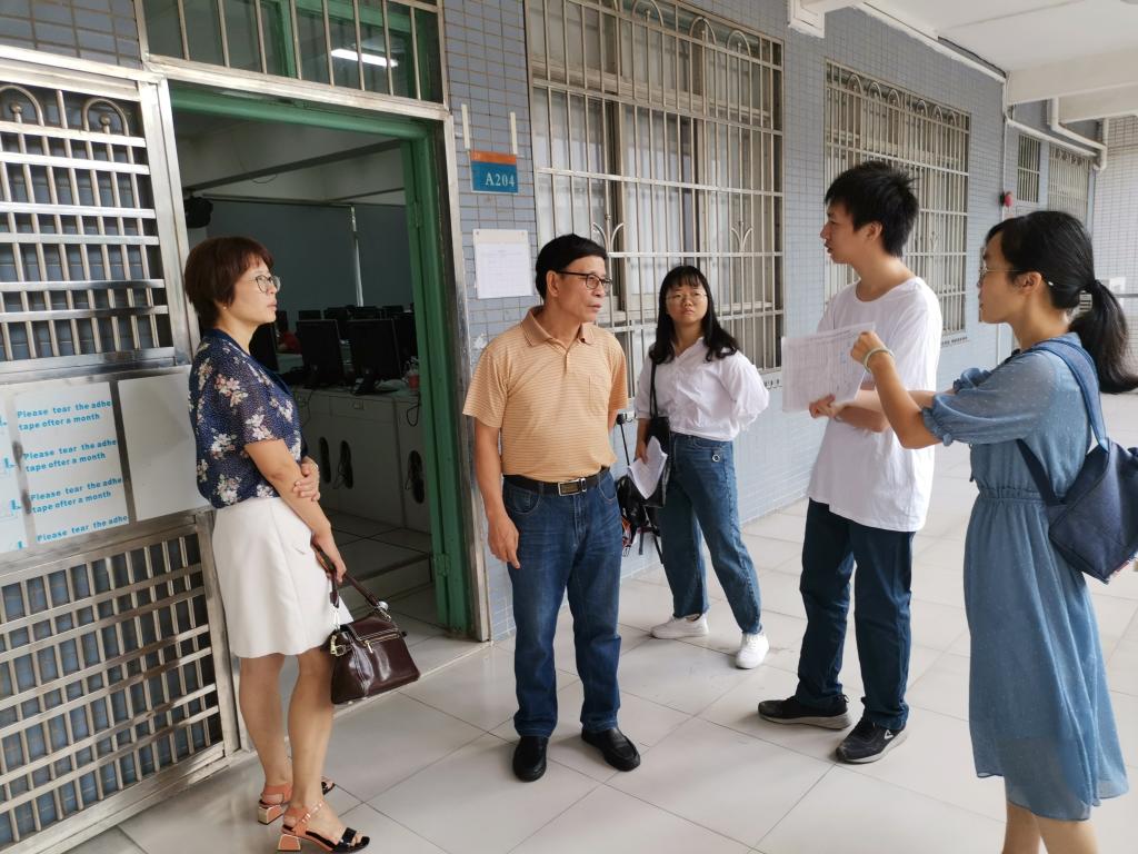 图为陈仲本经理、肖晶副书记、李惠娟主任以及辅导员、教务秘书巡查