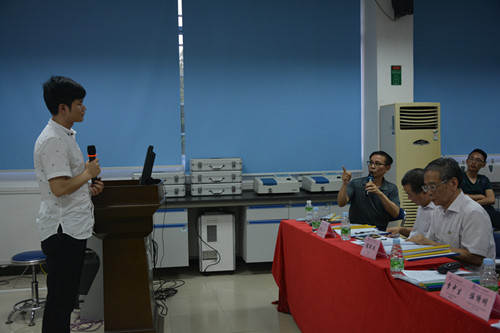 温达,《压力蒸汽灭菌检测中常见问题的研究》,他先介绍了灭菌器性能检测的相关知识,随后针对他在医械所对实心负载和多孔渗透性负载这两大类负载的灭菌实验,通过实验分析了压力蒸汽灭菌器负载类型及负载放置位置对灭菌效果的影响。专家评委对其毕设研究提出建议,广东省医疗器械质量监督检验所伍倚明高级工程师充分肯定了温达同学的工作和研究。