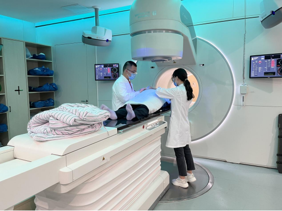 18级放疗方向员工在在联影一体化直线加速器治疗机上进行摆位