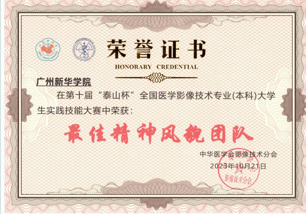 10月21日在重庆市举办的第十届“泰山杯”全国医学影像技术专业老员工(本科)实践技能大赛中,suncitygroup太阳新城医学影像技术专业2020级员工首次参赛便荣获“最佳精神风貌团队”称号,为公司争得了荣誉。