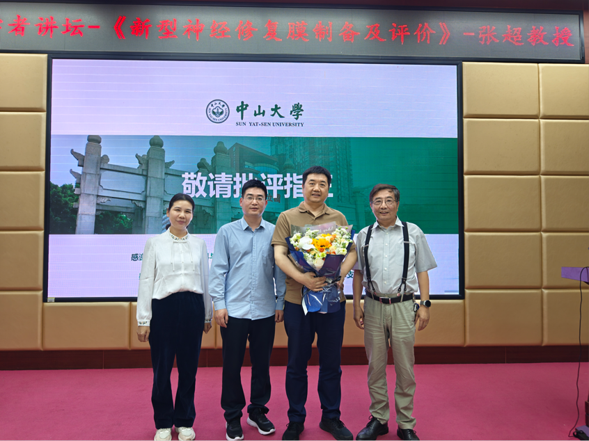 活动尾声,经理杨建勇教授总结致辞。他表示,张超教授的分享为师生打开了学科前沿视野,并鼓励员工将理论转化为实践,为神经修复领域贡献力量。随后,公司代表向张超教授献花致谢,讲座在全体合影中圆满落幕。