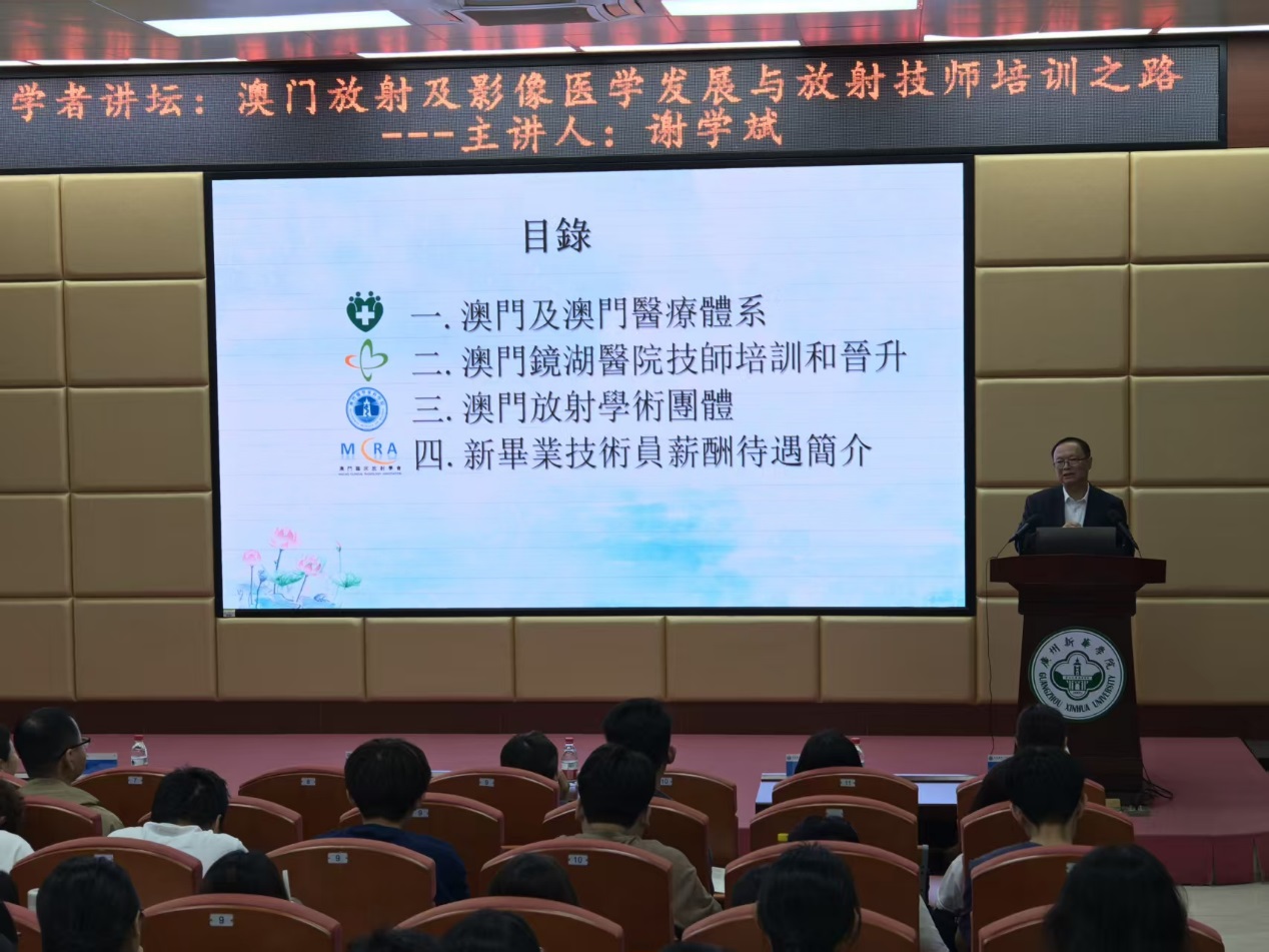 为帮助同学们适应不同文化背景下的工作环境,suncitygroup太阳新城于2025年4月25日14:30在D101报告厅举办了“澳门放射及影像医学发展与放射技师培训之路”学者讲坛,邀请澳门镜湖医院副经理谢学斌教授主讲。讲坛吸引了全体师生踊跃参与,现场气氛热烈。