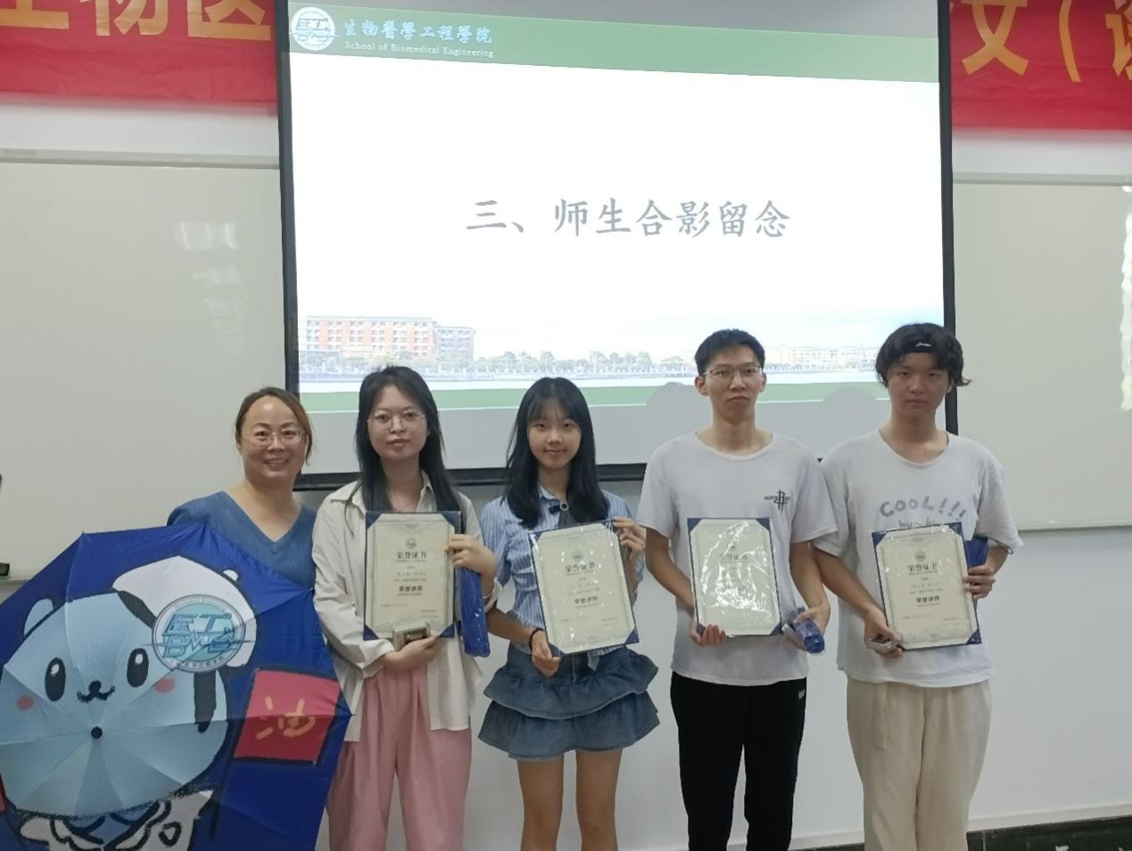 随后,由袁肇珠老师向四位优秀学子颁发礼品。