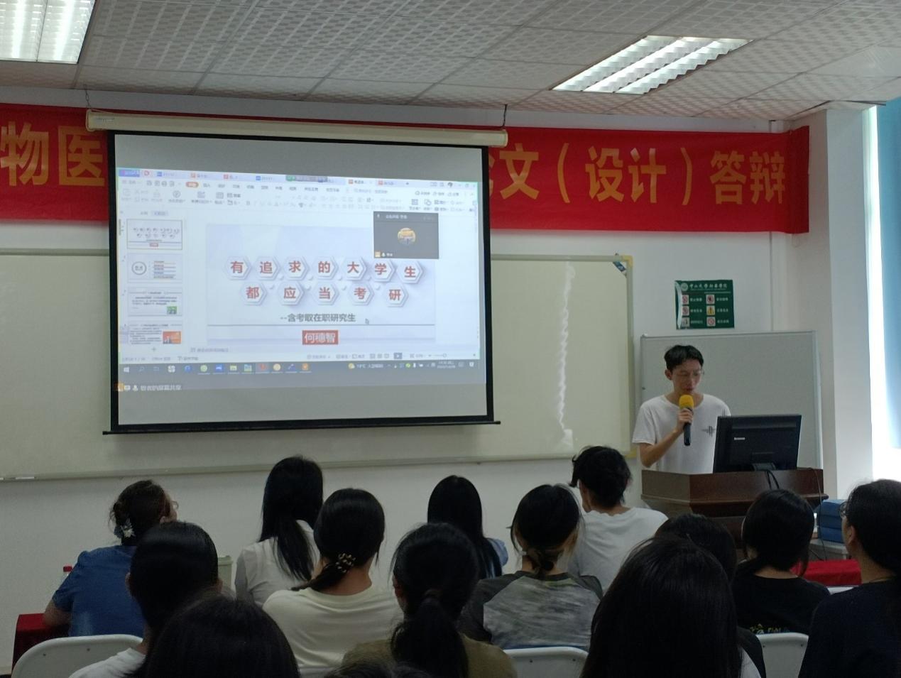 随后,2021级生物医学工程专业蔡锦科上台发言。蔡锦科同学主要向我们讲述了择校标准的规划以及他个人在考研过程中的时间规划,另外他提到心态在考研过程中至关重要,无论成功与失败都是对自己的磨炼。