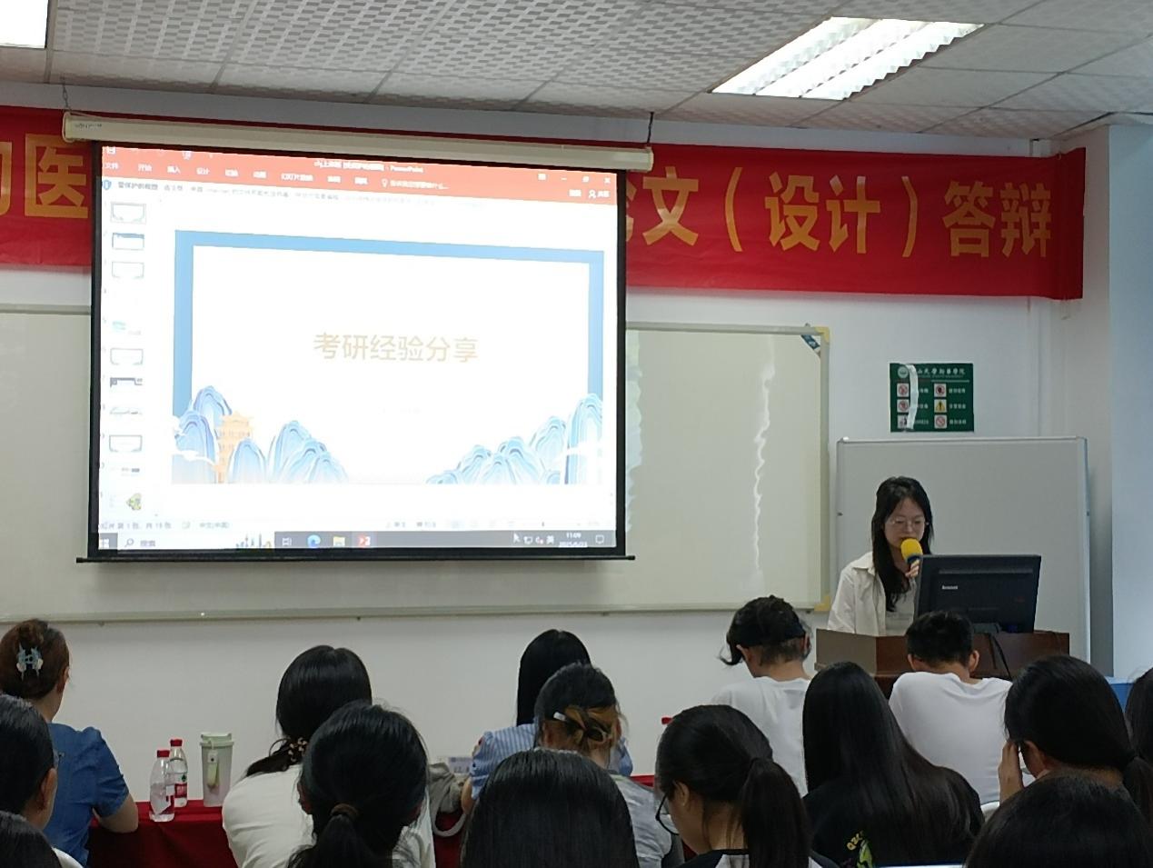 然后,2021级生物医学工程专业陈华静上台发言。陈华静同学向我们分享了她的考研历程,她同样说明了制定学习计划的重要性,并提出要在学习过程中不断地进行总结。她还提到同学们在考研过程中不要顾忌外界的眼光,要相信自己具有考研上岸的能力。